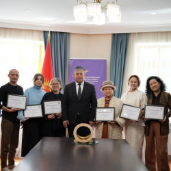 Глава национального агентства Равшанбек Сабиров в своем выступлении выразил искреннюю благодарность участникам за их неустанный труд, высокий профессионализм и преданность своему делу. Он особо отметил важность их вклада в сохранение и распространение национальной культуры, подчеркнув, что именно такие мастера формируют культурное лицо Кыргызстана в мире.