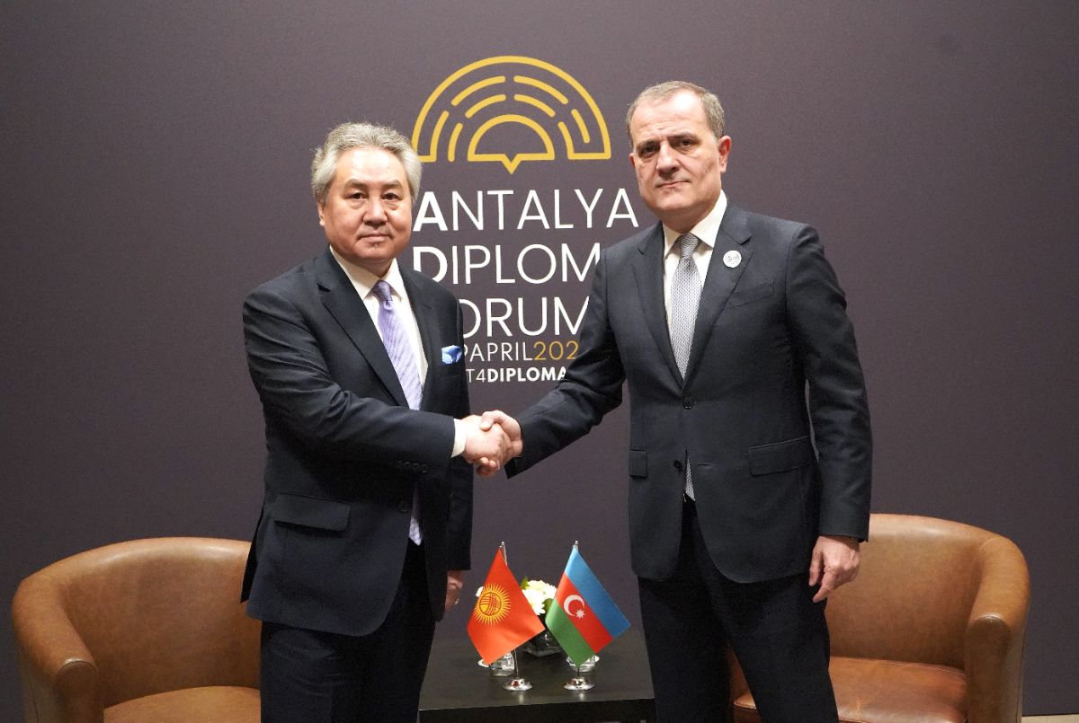 18 апреля 2026 года на полях Анталийского дипломатического форума состоялась двусторонняя встреча Министра иностранных дел Кыргызской Республики Жээнбека Кулубаева с Министром иностранных дел Азербайджана Джейхуном Байрамовым.