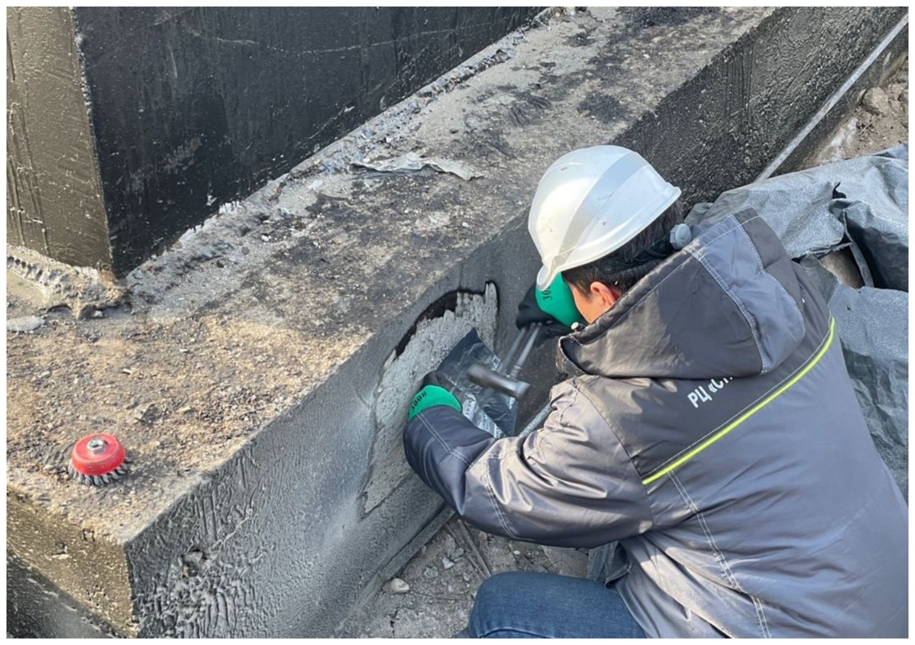 В ходе выездных работ специалисты на месте выполнили проверку прочности бетона методом неразрушающего контроля с применением молотка Кашкарова. Испытания проведены с целью определения фактической прочности бетона и оценки качества выполняемых строительных работ.