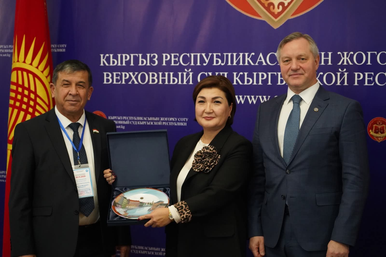 Также присутствовали председатель Административного суда города Бишкек Азис Эшалиев, судья Административного суда города Бишкек Эрмек Иманалиев, начальник отдела обеспечения деятельности судей по административным делам Верховного суда Айкөкүл Маатова и старший референт отдела по связям с общественностью, СМИ и международным отношениям Даир Абдуллоев.