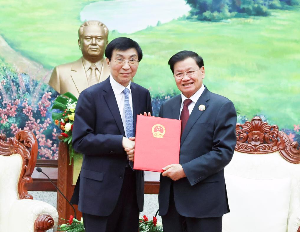 Во время встречи с Тхонглуном Сисулитом Ван Хунин отметил, что Китай готов работать совместно с Лаосом, чтобы реализовать стратегический консенсус, достигнутый лидерами двух партий и государств, продолжать твердо поддерживать друг друга в ситуациях, затрагивающих основные интересы и озабоченности сторон, включая тайваньский вопрос, и ускорить создание китайско-лаосского сообщества с единой судьбой, отличающегося высокими стандартами, высоким качеством и высоким уровнем. Он также проинформировал собеседника о 4-м пленуме ЦК КПК 20-го созыва и выразил готовность углубить обмен опытом управления с Лаосом и совместно продвигать социалистическое развитие каждой из стран.