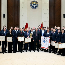 «Разумеется, за такими достижениями стоят упорные тренировки, вера в будущие победы и всесторонняя поддержка. Благодаря вашему упорству, труду и командному духу, Кыргызстан впервые в своей истории поднялся в группу «Б» второго дивизиона Чемпионата мира», - констатировал президент.