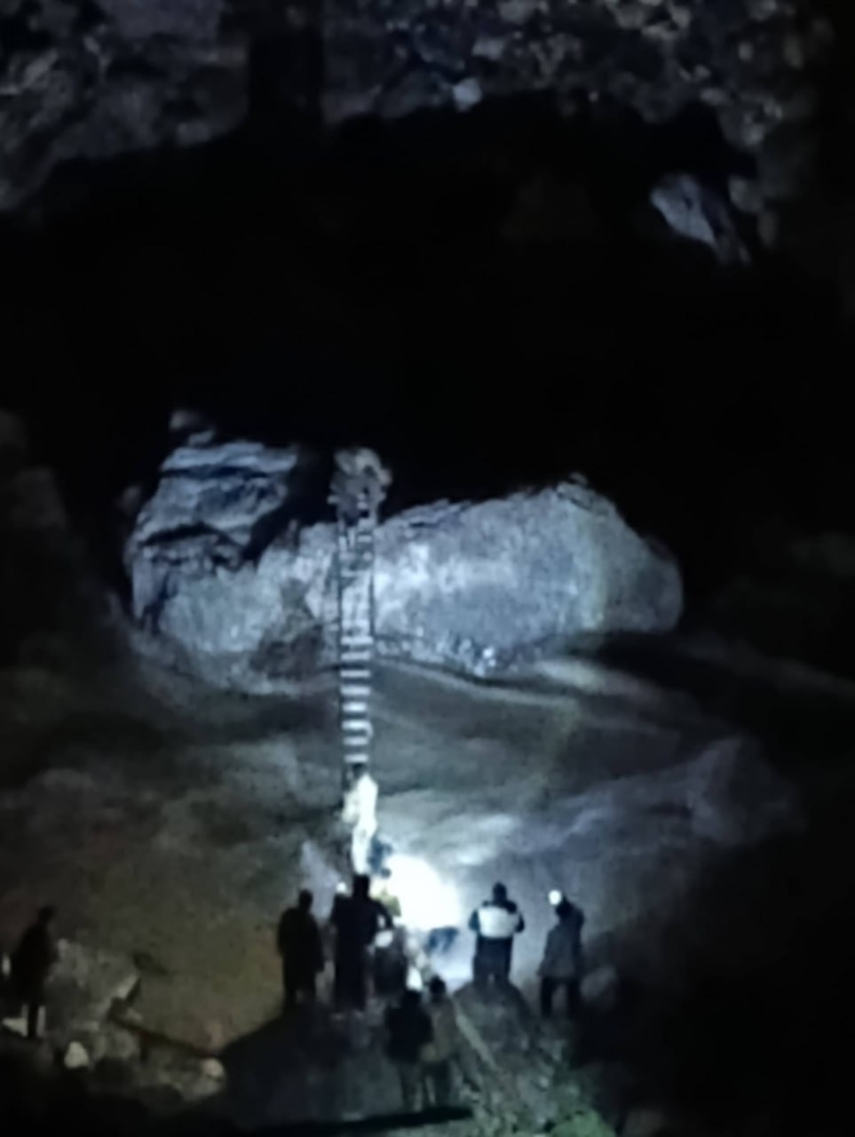 Другой мужчина перебрался на большой валун посреди реки и не смог вернуться обратно. Его спасли спасатели КЧС Зарафшанской долины.