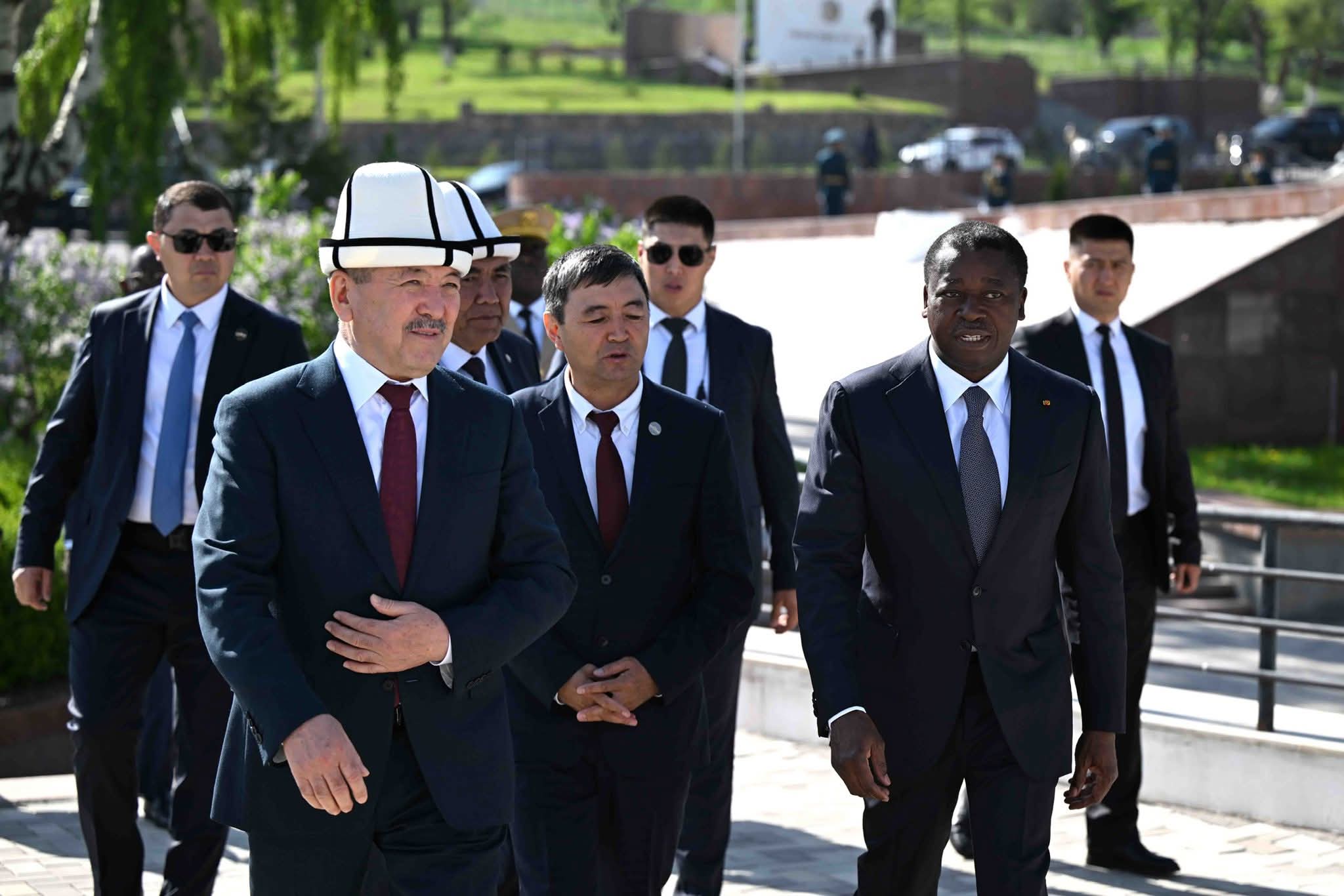 Председатель Совета Министров Фор Эссозимна Гнассингбе в сопровождении Председателя Кабинета Министров Кыргызской Республики-Руководителя Администрации Президента Кыргызской Республики Адылбека Касымалиева возложил венок к мемориалу жертв трагических событий 1916 года.