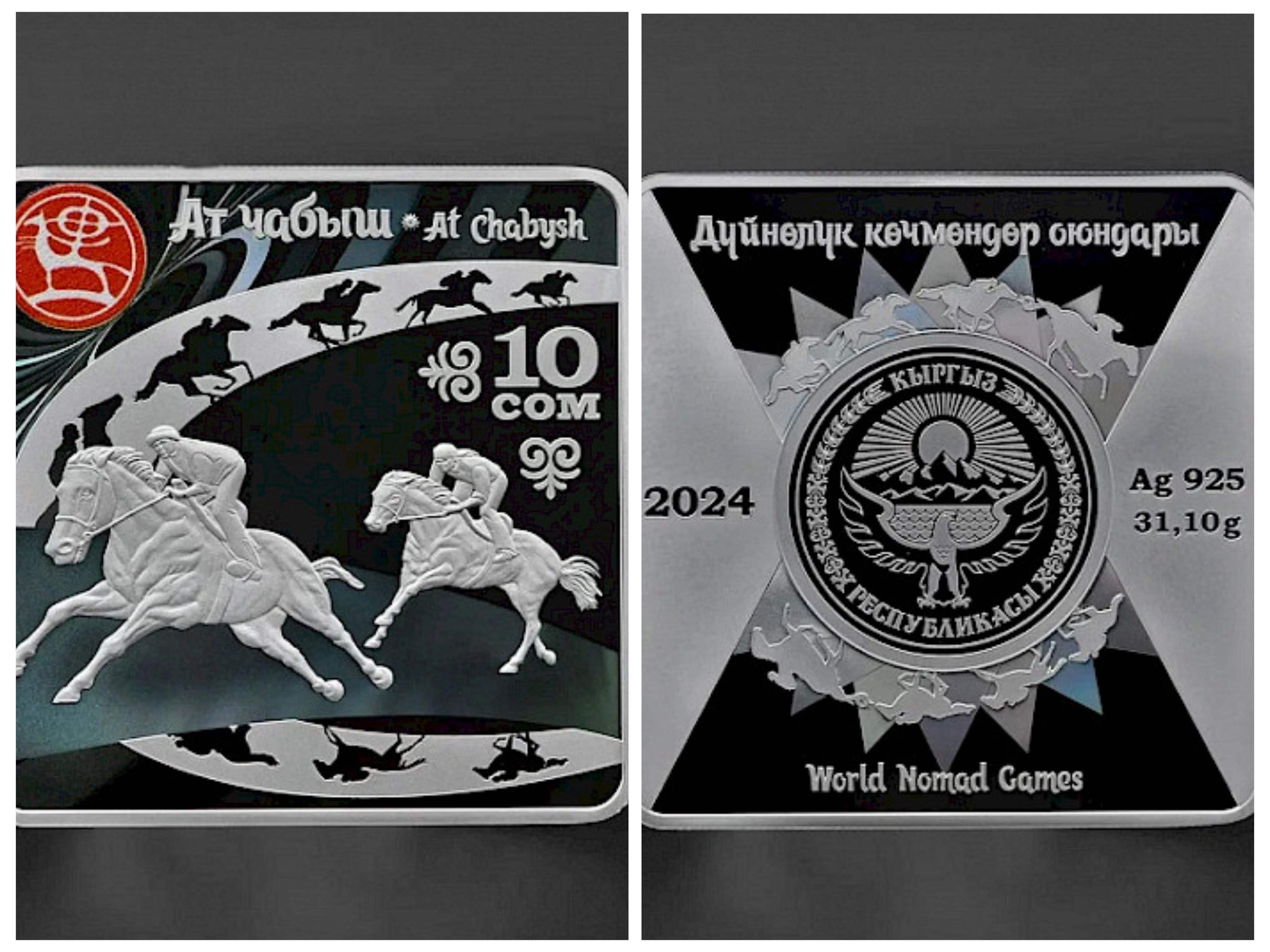 Маалыматта ылайык, “Дүйнөлүк көчмөндөр оюндары” сериясындагы күмүш монеталар 8-14-сентябрда Казакстандын Астана шаарында өтө турган V Дүйнөлүк көчмөндөр оюндарына арналат.