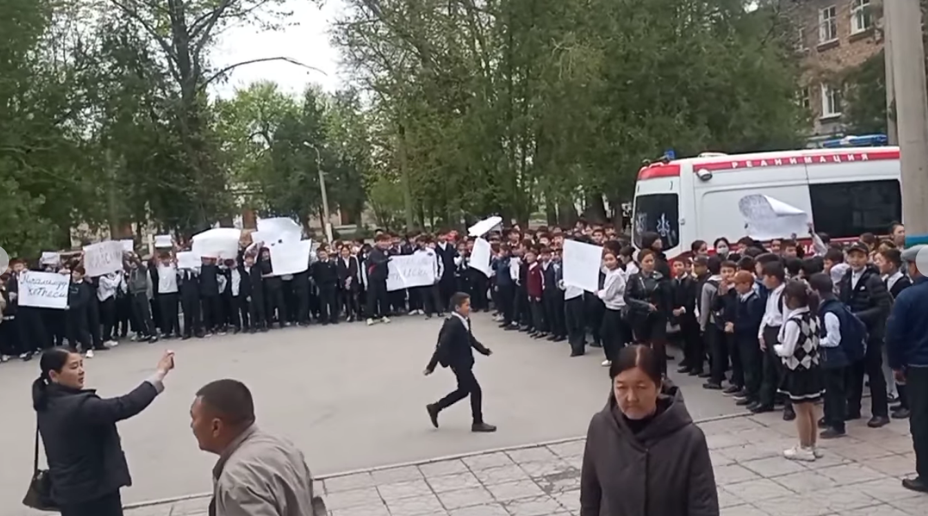 Буга чейин Бишкек шаарындагы №1 мектеп-интернатынын окуучулары жана мугалимдери митингге чыгышканы кабарланып, нааразычылык акциясынын видеосу социалдык тармактарга жарыяланган.