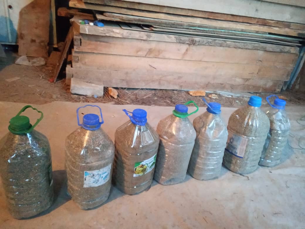Кылмышка шектүү адамдын үйүнөн күбөлөрдүн катышуусу менен санкциялаштырылган тинтүү жүргүзүү учурунда сарайынан жана жертөлөсүнөн 8 данаа 5 литрлик пластикалык идишке жана целлофан баштыкка салынган жапайы кендир жыттанган өсүмдүк заты табылып алынган.