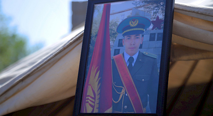 Ош шаарынын 223-кварталында кыргыз-тажик чек арасындагы куралдуу кагылышууда каза болгон 19 жаштагы аскер кызматкери Азамат Мирзакуловду акыркы сапарга узатуу зыйнаты өттү. Бул тууралуу Ош шаардык мэриясы билдирет.