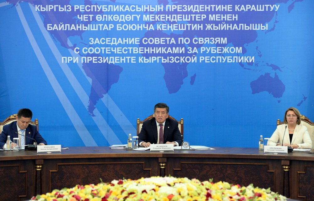«2018-жылы мекендештер, эмгек мигранттары жана жергиликтүү ишкерлер Кыргызстандын аймактарынын өнүгүүсүнө 6,1 млрд. сом салым кошушту», — деп баса белгиледи Кыргыз Республикасынын Президенти Сооронбай Жээнбеков бүгүн, 2-августта, Чет өлкөдөгү мекендештер менен байланыштар боюнча кеңештин биринчи жыйналышында.