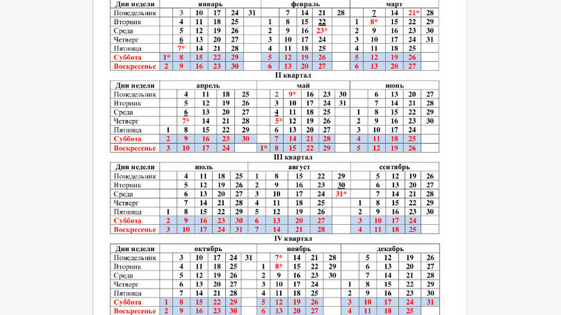 Ал эми майрам алдындагы кыскартылган жумуш күндөрү: 6-январь, 22-февраль, 7-март, 6 -апрель, 4-май, 30-август.
