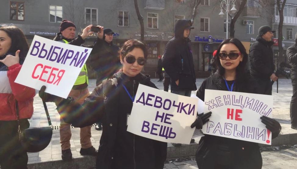 Быйыл 8-мартта Алматы шаарында жүздөгөн аял гендердик тең укуктуулук үчүн жүрүшкө чыгышкан. Акимчилик февраль айында "КазФем", "Феминита", "Фемагора", "Фемсреда" феминисттик топторуна жана "Свет" коомдун фондуна "Ар бир аял маанилүү" жана "Феминизм Казакстанды сактайт" деген ураандар менен аялдар жүрүшүн жана митинг өткөрүүгө уруксат бергени белгилүү болгон.