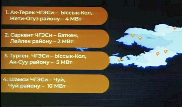 - Ак-Терек (Ысык-Көл облусунун Жети-Өгуз району) – 4 МВт;