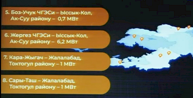 - Жергез (Ысык-Көл облусунун Ак-Суу району) – 6,2 МВт.