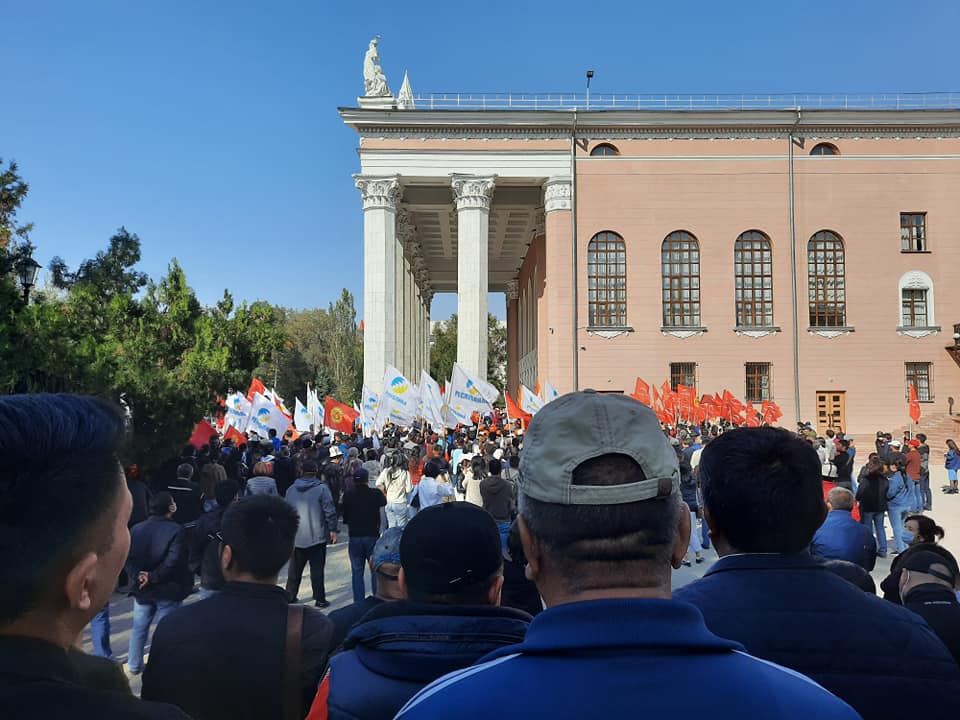 Бишкектин Ала-Тоо аянтында шайлоонун жыйынтыгын жокко чыгарууну талап кылып жаткан митинг өтүп жатат. ЖК депутаты Рыскелди Момбеков чыгып сөз сүйлөп агынан жарылса, Жанар Акаев учурдагы кырдаалга токтолсо, талапкер Чынара Шаршекеева болуп өткөн шайлоону жокко чыгарууну талап кылды.