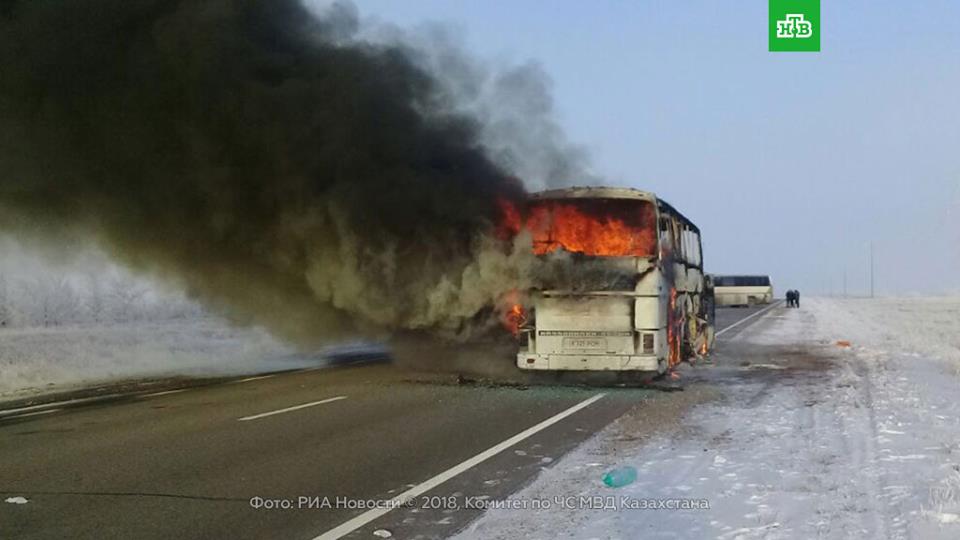 Бүгүн Казакстандын Актөбө облусунда чоң жолдо келе жаткан автобус жүргүнчүлөрү менен өрттөнүп кетип, 52 Өзбекстандын жарандары тирүүлөй күүп кеткен.