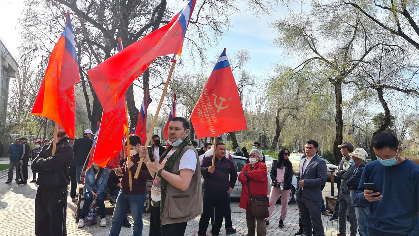 «Кыргызстан коммунисттер партиясынын» мүчөсү Амантур Манапбаевдин айтымында, митингге жарандык активисттер дагы келишкен.