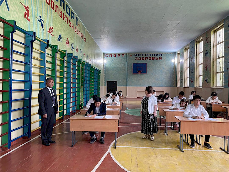 Билим берүү министринин орун басары Муратбек Касымалиев Аламүдүн районундагы №1 орто мектебинде жыйынтыктоочу мамлекеттик аттестациянын жүрүшүнө катышып келди.