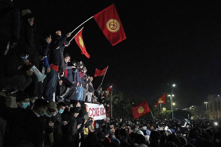 9-октябрь күнү Алмазбек Атамбаев, Өмүрбек Бабанов баштаган саясий күчтөр Ала-Тоо аянтына келишкен. Ал жерде «Ата-Мекен», «Замандаш», «Республика», «Реформа» партияларынын да өкүлдөрү болгон.