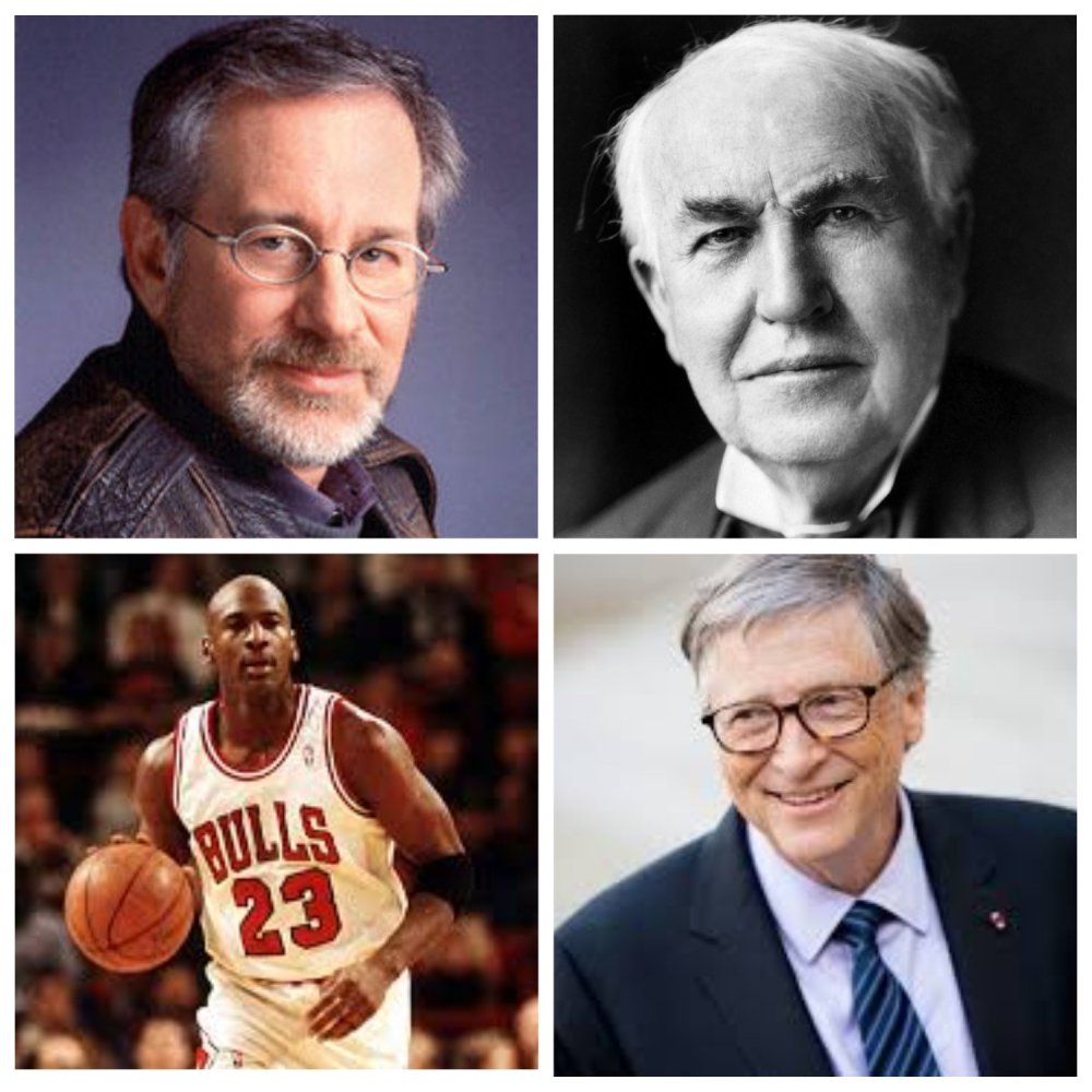 Мугалимдери аны акыл-эси кем деп эсептешчү. Ийгилик тарыхы: Салыштырмалуулук теориясын иштеп чыгып, нобель сыйлыгына ээ болгон. Томас Эдисон, ойлоп тапкыч Тарыхтагы жеңилүүсү: Лампочканы ойлоп табуу боюнча миңден ашык ийгиликсиз аракеттерди жасаган. Ийгилик тарыхы: Кийин лампочканы биринчилерден болуп өзүнө патенттеген. Электр эсептегичин, фонографты ойлоп тапкан. Дүйнө жүзү боюнча 4 миңге чукул ачылыштардын патентинин ээси болуп саналат. Майкл Джордан, баскетболчу Тарыхтагы жеңилүүсү: Мектептеги баскетбол командасынан куулган. Тарыхтагы ийгилиги: Кийин дүйнө жүзүнө таанылган белгилүү баскетбол жылдызы болууга жетишкен. Стивен Спилберг, режиссер Тарыхтагы жеңилүүсү: Түштүк Калифорния Университетине 3 ирет тапшырып, 3 ирет тең өтпөй калган. Тарыхтагы ийгилиги: Ал тарткан тасмалар жалаң хит болуп, учурдун мыкты режиссёру экендигин далилдей алды. Ага тиешелүү «Список Шиндлера», «Челюсти», «Парк юрского периода» ж.б тасмалар бар.