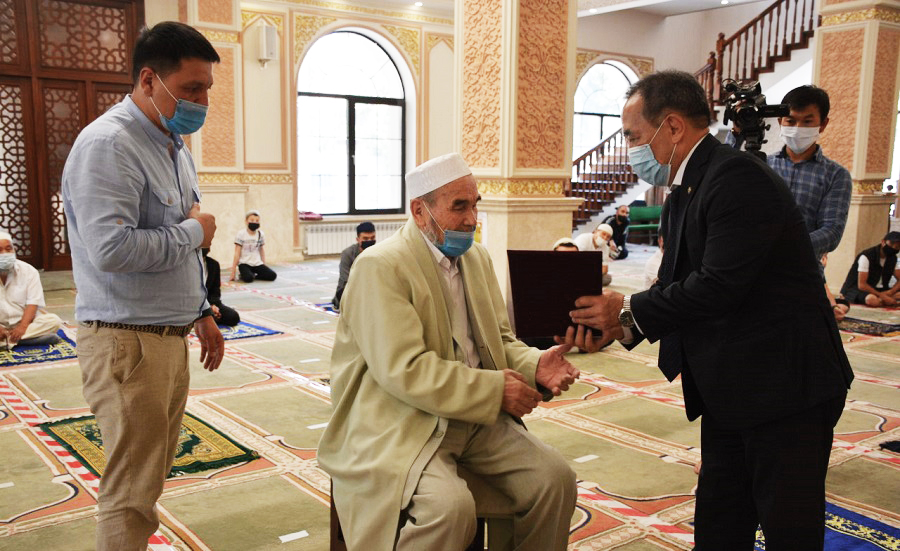 Сыйлык тапшыруу иш-чарасына Президенттин Аппаратынын гуманитардык өнүктүрүүгө мониторинг жүргүзүү жана жарандык коомдун институттары менен өз ара аракеттенүү бөлүмүнүн башчысы Кудайберген Базарбаев, КР Дин Иштери боюнча мамлекеттик комиссиясынын директору Зайырбек Эргешов жана Кыргызстан Мусулмандарынын Азирети Муфтийи Максатбек ажы Токтомушев катышты.