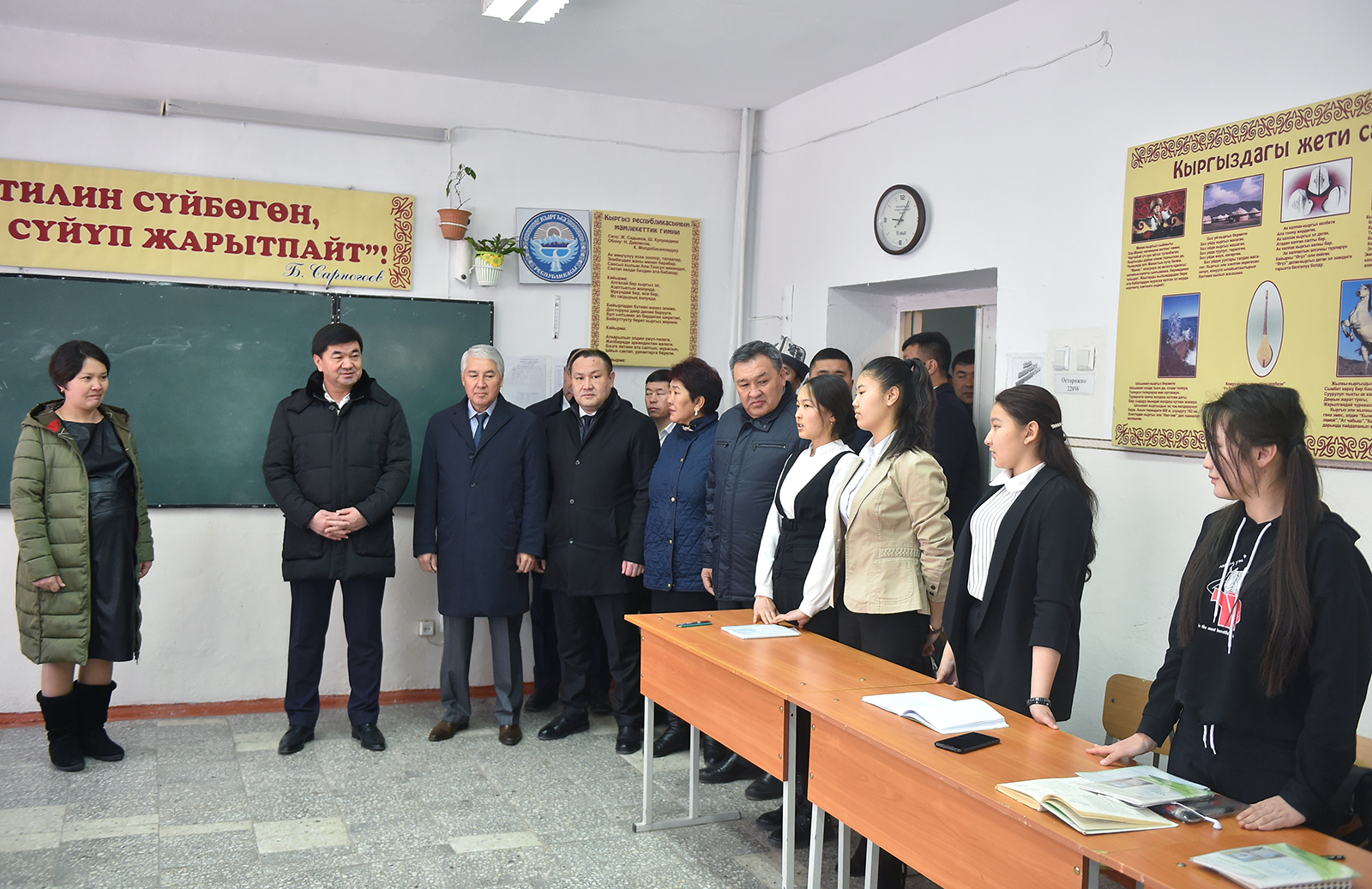 Мухаммедкалый Абылгазиев Аламүдүн районун Таш-Дөбө айылындагы Бейшеналиева атындагы орто мектепке барганда билим берүү мекемесинин жетекчилиги эски терезелерди алмаштырып берүүнү, ошондой эле жаңы спорт зал куруп берүүнү өтүндү.