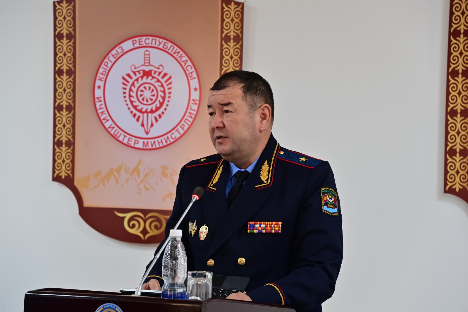 Жалпы баяндама жасоо үчүн сөз ички иштер министринин биринчи орун басары Адылбек Бийбосуновго берилип, ички иштер органдарынын 2024-жылдын 9 ай ичиндеги аткарган ыкчам-кызматтык ишмердүүлүгүнүн жыйынтыгы тууралуу маалымат берди.