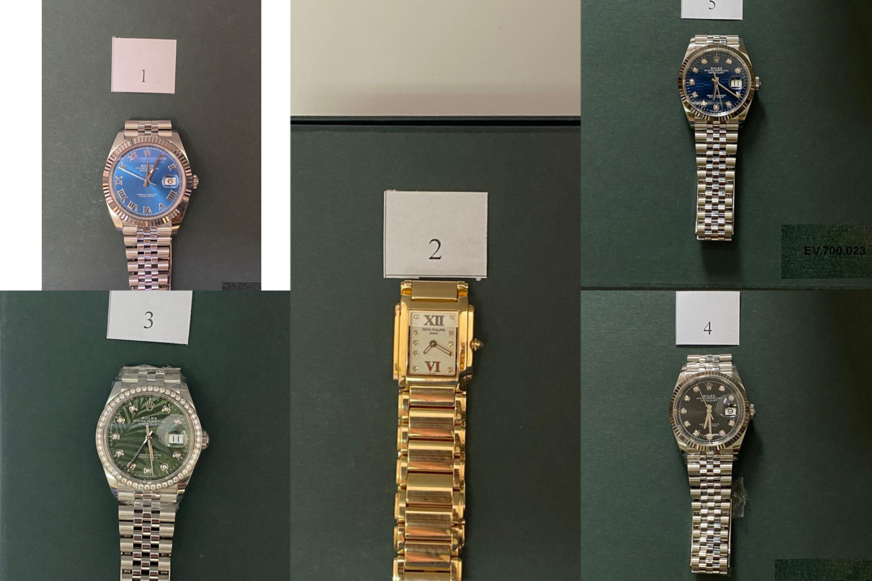 "ТСКД" ЖЧКсынын дарегине "ROLEX" соода маркасынын 5 бирдик жана "PATEK PHILIPPE GENEVE" соода маркасынын 1 бирдик оригинал кол сааттары келген.