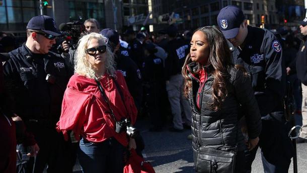 Central Parkтын түштүк-чыгышында Trump International Plazaга жакын жердеги Колумбус-Серклга чогулган митингчилердин бир бөлүгү аянтта жолду тосушту.