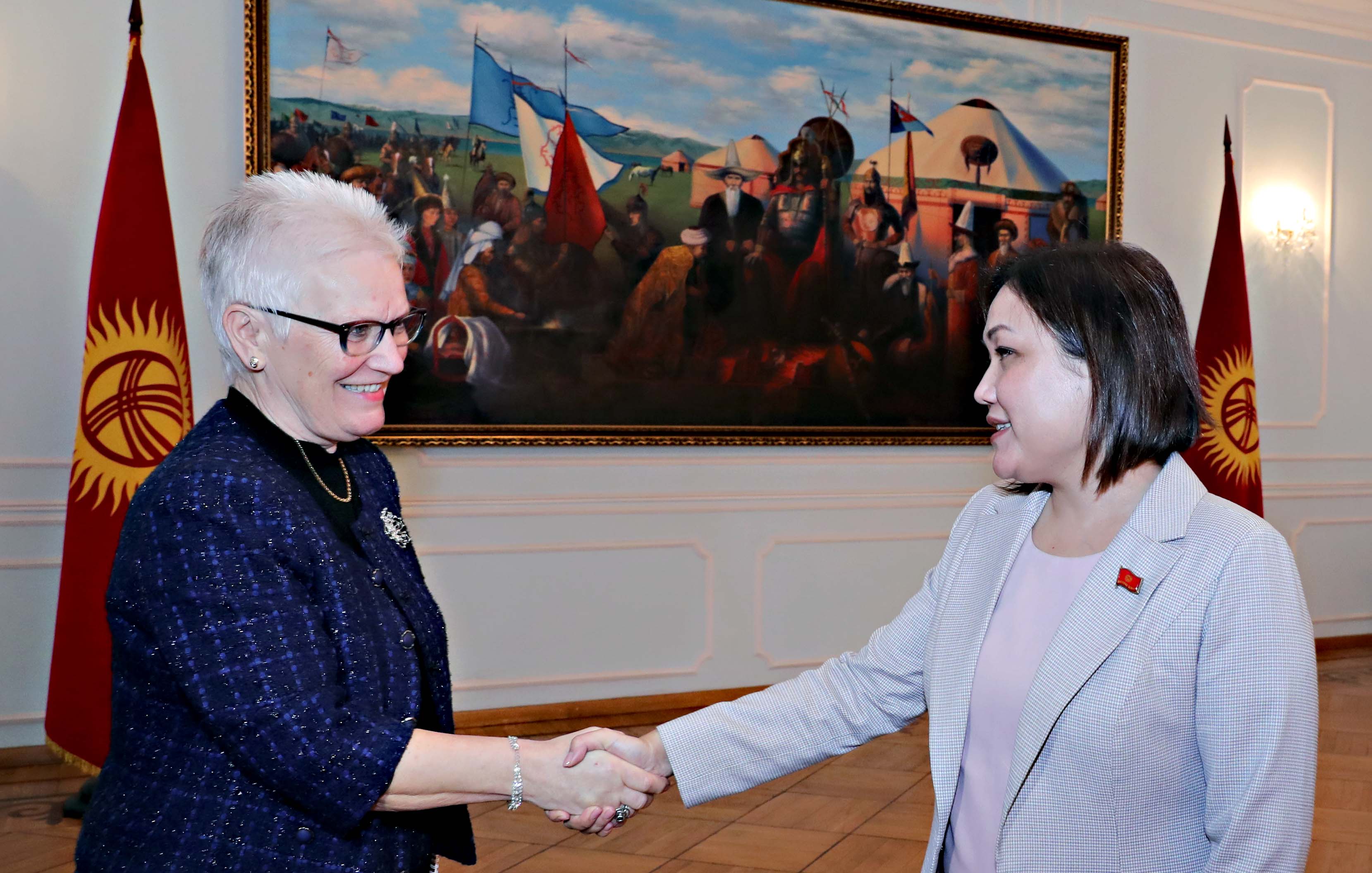 Вице-спикер Аида Касымалиева кыргыз парламентинин ишмердүүлүгүнүн өзгөчөлүктөрү, андагы Айым-депаттар форумунун калкты социалдык жактан коргоо усулдарын өркүндөтүү, аялдардын саясатка катышын кеңейтүү жаатында жетишкен ийгиликтери тууралуу учкай маалымат берди. «Биз Швециянын Рикстагы менен кызматташтык мамилелерди кеңейтүүгө жана анын депутаттары менен аталган тармактар боюнча тажрыйба алмашууга даярбыз. Бийликтеги аялдар өз иштерин жигердүү жүргүзүп, калк турмушун жакшыртуу жаатында ишенимдүү натыйжаларга жетишүүгө тийиш», - деди ал.