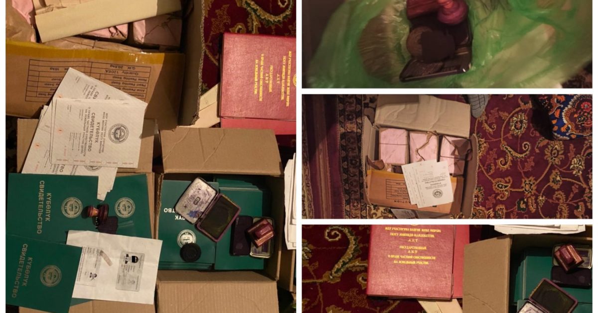 Мындан тышкары, бул ишке тиешеси бар башка адамдын жашаган жери жана иштеген жери боюнча тинтүү жүргүзүлүп, анын натыйжасында 1000ден ашык жер тилкесине (үлүшкө) жеке менчик жөнүндө күбөлүктөрдүн жаңы бланкалары, паспорттордун көчүрмөлөрү, ар бир мыйзамсыз өзгөртүлгөн айыл чарба жерлеринин расмий жана азыркы ээлеринин тизмелери табылган.