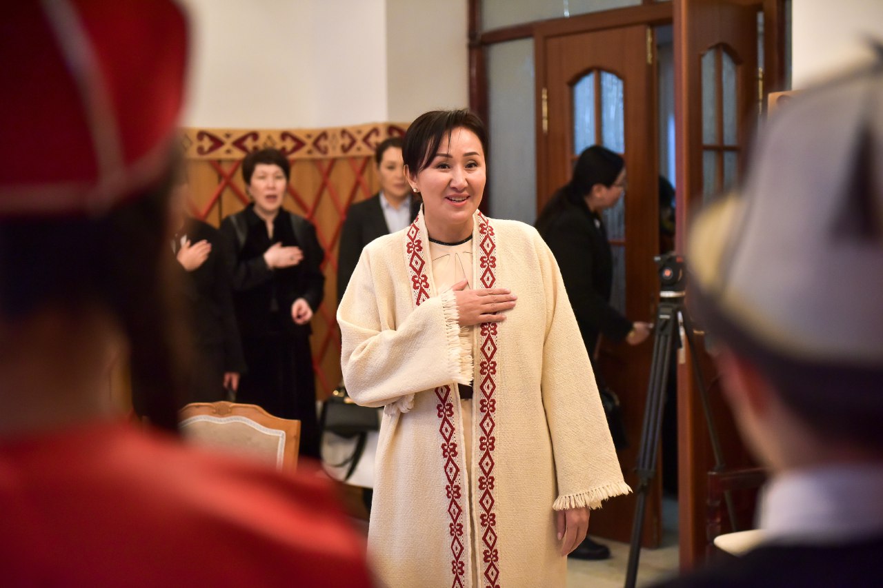 Биринчи айым мекендештер менен жолугушуунун алдында иш-чара өткөн Кыргызстандын Элчилигинин ишмердүүлүгү менен таанышып, Ак калпак күнүнө карата кичинекей кыргызстандыктардын өнөрүн көрдү.