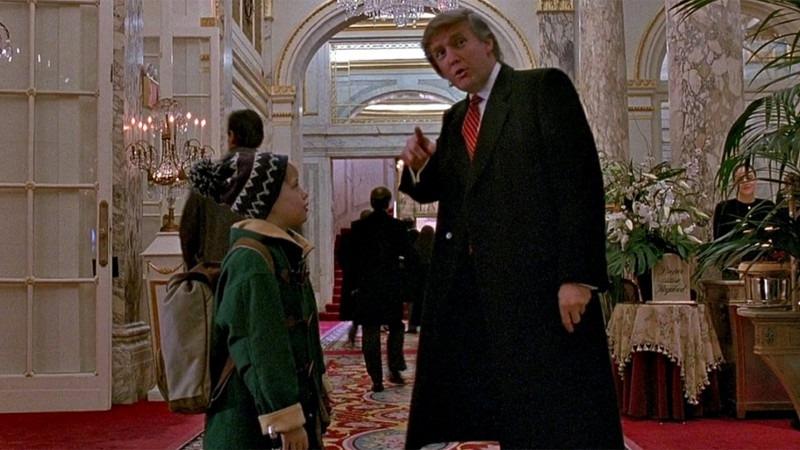 Маалыматка ылайык, тасманы тартуучу топ "Үйдө жалгыз 2" тасмасын тартуу үчүн ошол мезгилде Трампка таандык "Plaza" аттуу мейманкананы тандап алган. Тасманы мейманканадан тартууда Трамп такыр башка шарт койгон.