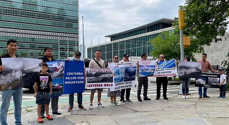 Нью-Йорктогу кыргызстандыктар “Кумтөр” алтын кенин иштеткен канадалык Centerra Gold компаниясына каршы митинг уюштурушту.