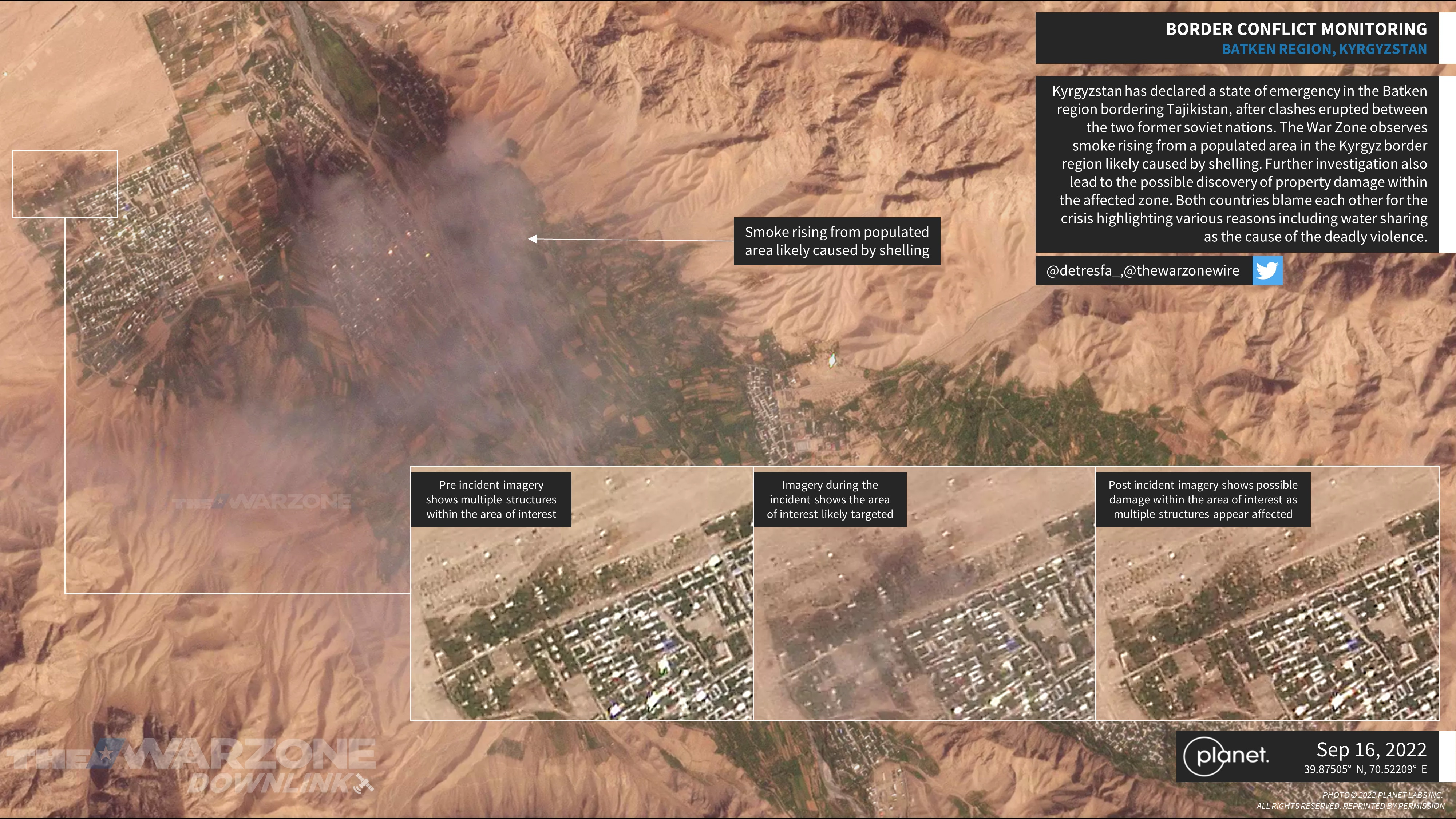 Америкалык “The War Zone” аскерий-аналитикалык басылмасы Тажикстандан аскерлер жана бандалар басып кирген кездеги Ак-Сай айылынын спутниктик картасын жарыялады. Спутниктен тартылган сүрөт 16-сентябрда – Тажикстандын Кыргызстандын аймагына катуу чабуул жасаган күнү тартылган.