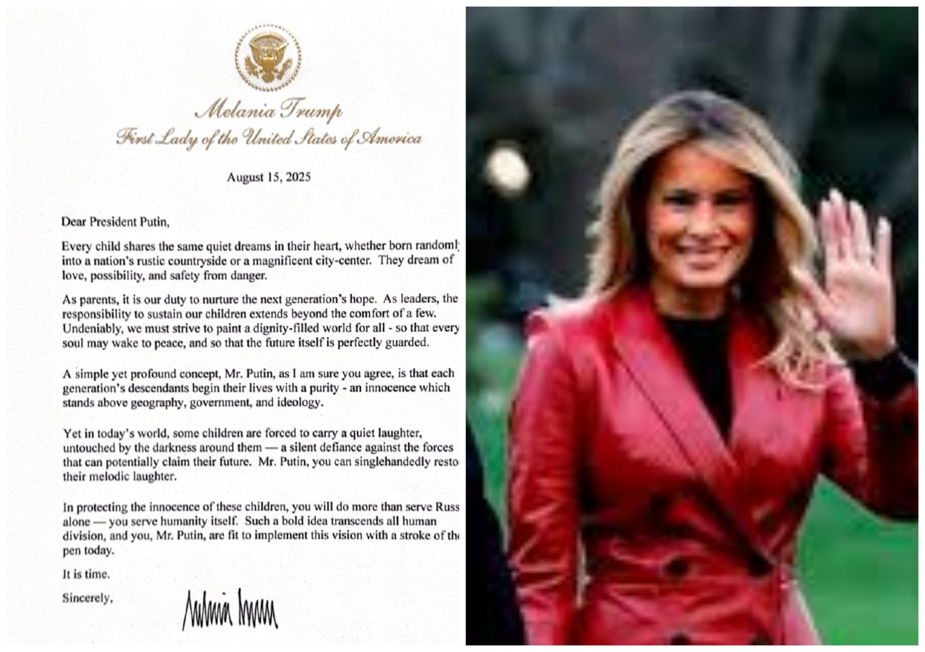 Бул балдардын күнөөсүздүгүн сактоо менен сиз бир гана Россияга кызмат кылбайсыз – бүтүндөй адамзатка кызмат кыласыз. Мындай кайраттуу идея бардык адамдык бөлүнүүлөрдөн жогору турат. Урматтуу Путин мырза, бүгүн бул көрөгөчтүкту сиз бир калемдин шилтеми менен ишке ашыра аласыз.
