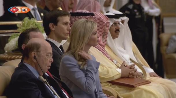 АКШнын президенти Дональд Трамптын Рияддагы сөз сүйлөөсү убагында, Трамптын кызы Иванканын жанында отурган соода министри Уилбур Росстун көзү илинип кетти.