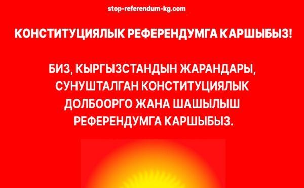 Активисттер Конституциянын жаңы редакциясына каршы кол топтоп жатышат. Бул тууралуу “Стоп-референдум” сайтына жарыяланды. Аталган сайтка кирип петицияны толтурса болот.