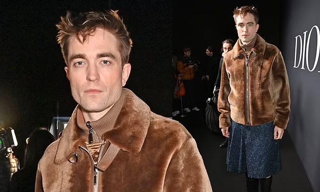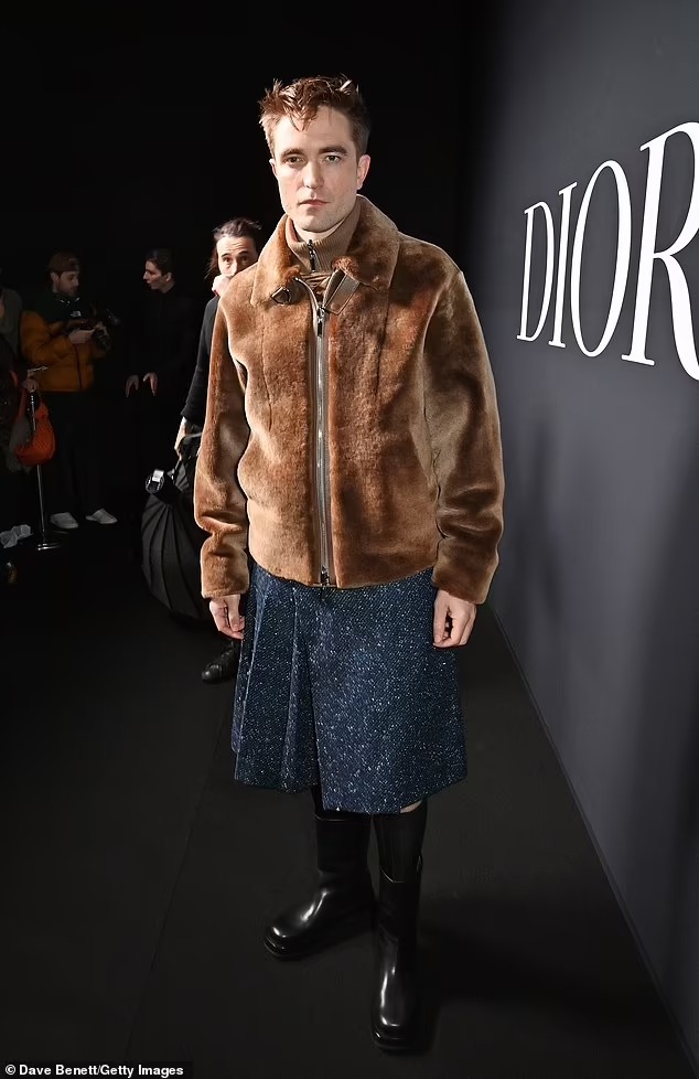 Маалыматка ылайык. 36 жаштагы актёр мода көргөзмөсүнө жүндүү күрмө, ачык күрөң түстөгү жемпир жана кочкул көк түстөгү орто узундуктагы твид юбка менен келген. Паттинсон бул образын кара түстөгү бийик өтүк менен толуктаган.
