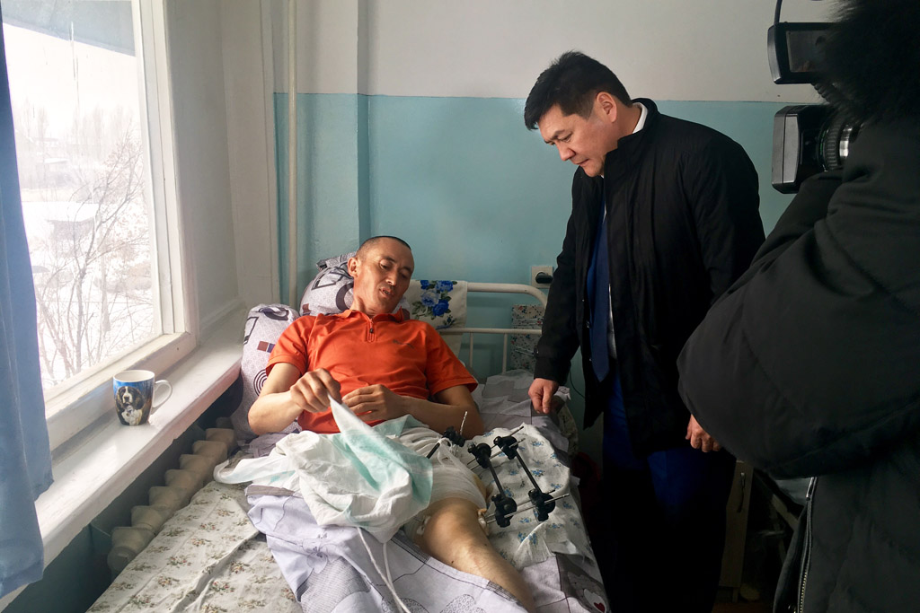 Бул маалыматты угар замат Акыйкатчы Кубат Оторбаев ок жеген жарандын абалы менен жакындан таанышуу жана болуп өткөн окуяны өз оозунан угуу үчүн А. Усенбаев дарыланып жаткан №4 шаардык ооруканага жөнөдү.