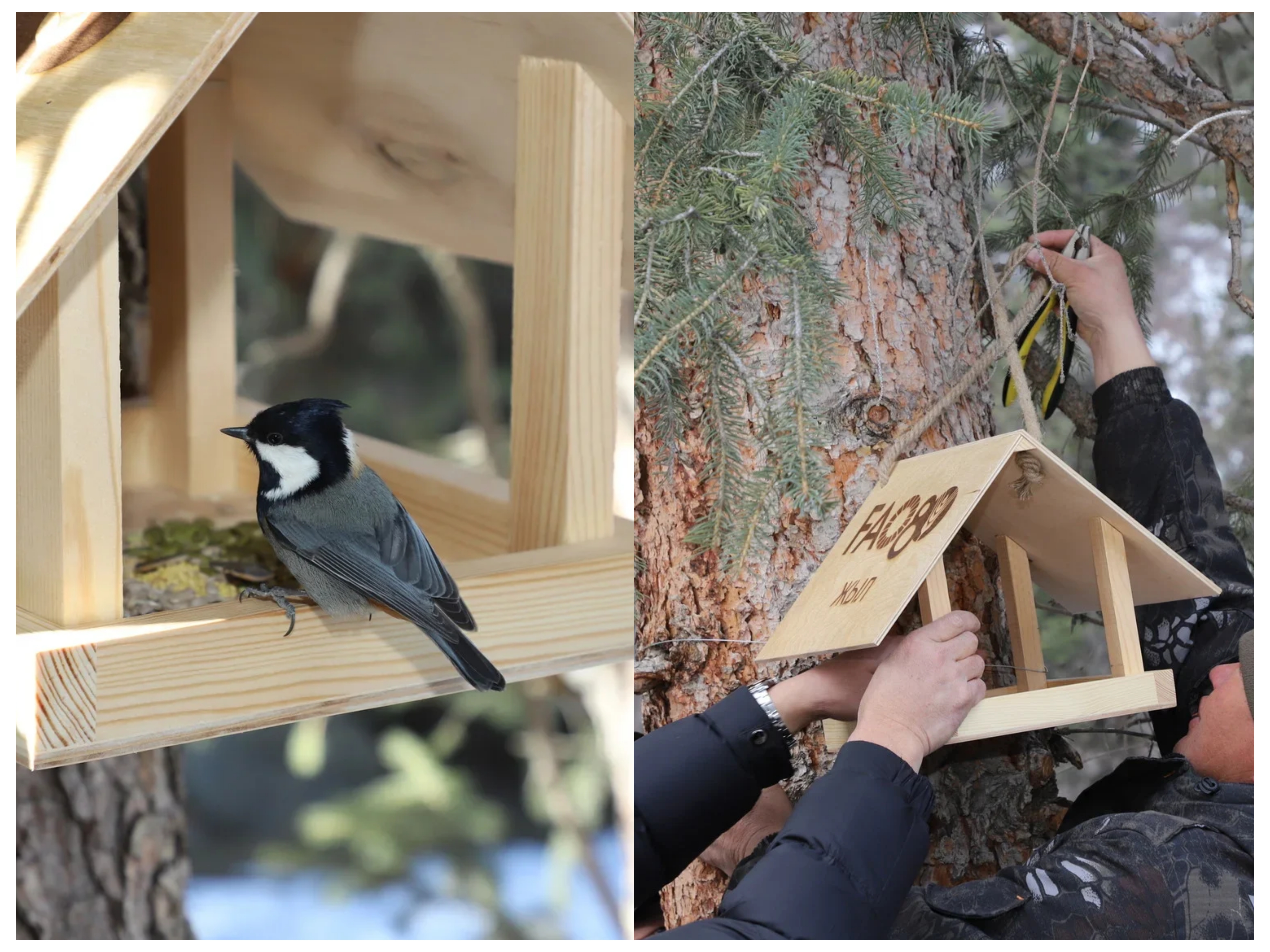 Экологиялык акцияда канаттуулар үчүн жем салгычтарды орнотууда парктын администрациясы, токойчулары жана егерлери алдын ала ылайыктуу жерлерди тандап, ошондой эле экосистемага зыян келтирбөө үчүн жем салгычтарды туура орнотуу боюнча инструктаж өткөрүп чоң көмөк көрсөтүштү.