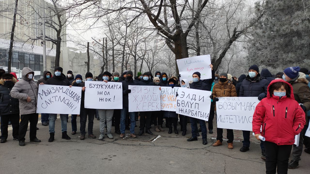 Бүгүн, 11 декабрда өкмөт үйүнүн алдына Жалал-Абад облусунун Ала-Бука районунда жайгашкан «КАЗ Минералз Бозымчак» ишканасынын кызматкерлери митинг өткөрүштү.