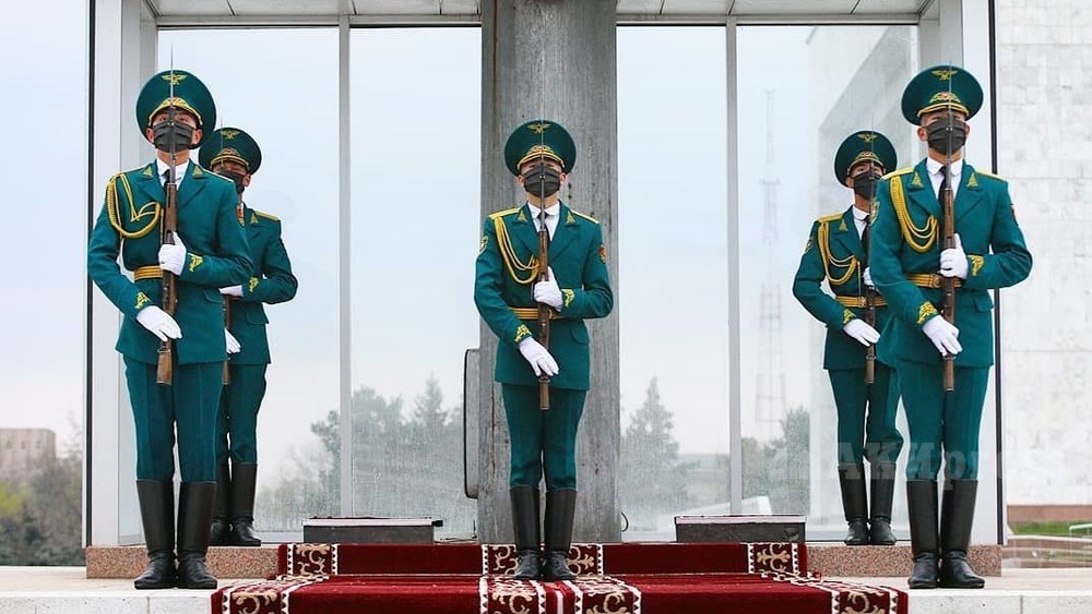 "Ала-Тоо" аянтында эртеден кечке Кыргызстандын желегин кайтарып турган эки жоокерге азыр бир топ эле кыйынчылык жаралыптыр. Себеби кечке бет кап тагып турушат экен. Алардын жанына эч ким деле барбайт, бет кап тактырбай эле койсо болмок экен. Себеби бет кап менен дем алуу кыйын да. Алар дагы бирөөнүн балдары", - деп жазган ал.