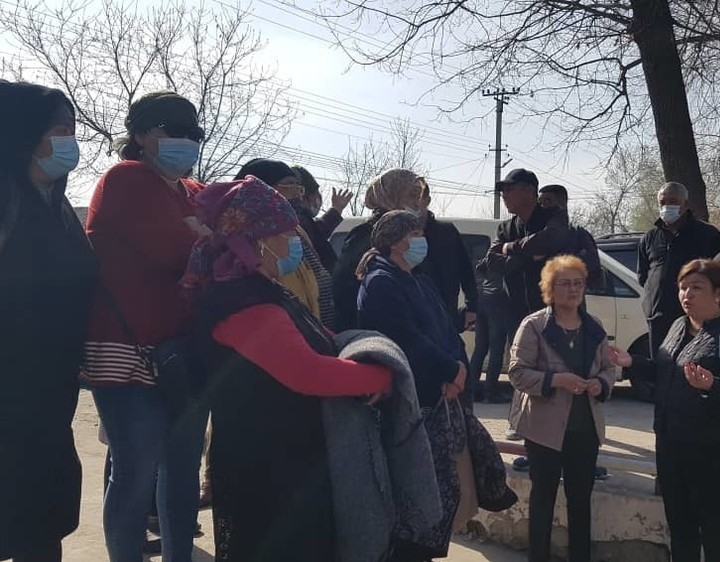Бүгүн, 15-апрелде саат 06:00 чамасында Аламүдүн районундагы Пригородный айыл өкмөтүнүн имаратынын алдына аялдардын тобу чогулду. Алар өзүнө бензин чачып өрттөй турганын айтып жатышат.