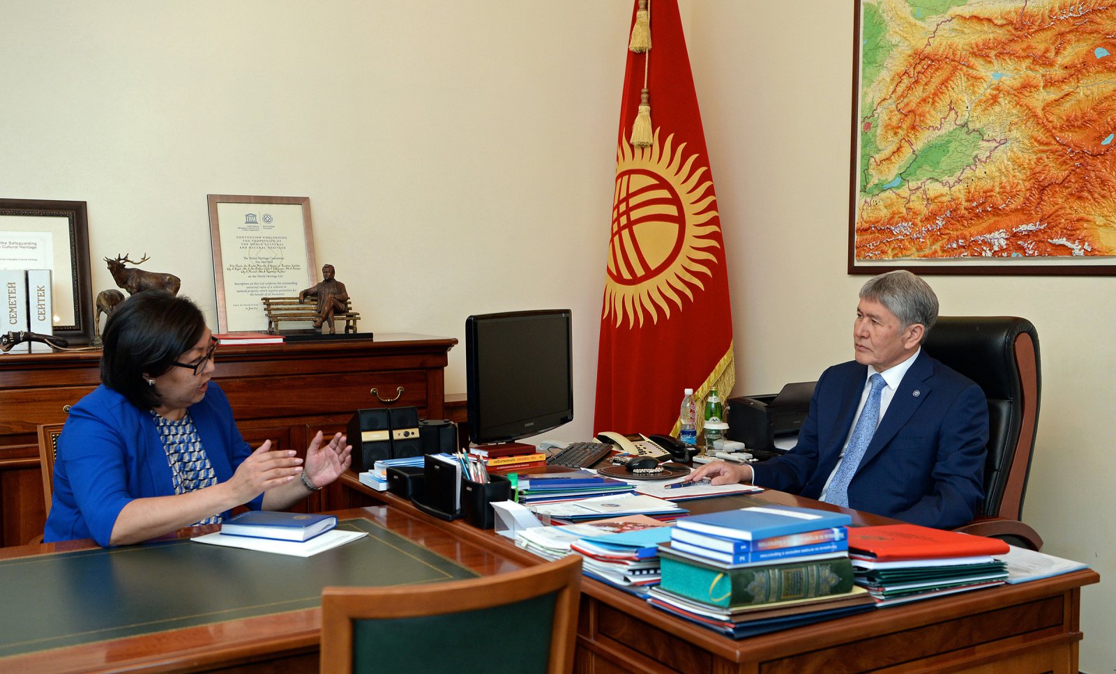 Кыргыз Республикасынын Президенти Алмазбек Атамбаев кечээ, 27-июнда, кеңешчиси Мира Карыбаеваны кабыл алып, Кыргызстанда 2017-жылдын 20-22-июлунда өтө турган “Алтай цивилизациясы жана алтай тил бүлөсүнүн тектеш элдери ” эл аралык форумун өткөрүүгө даярдык көрүүнүн жүрүшүн талкуулады.