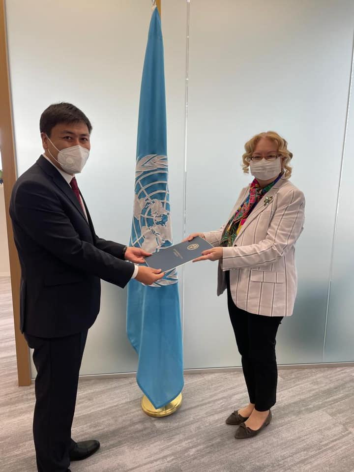 Кыргыз Республикасынын БУУ жана Женева шаарындагы башка эл аралык уюмдардагы туруктуу өкүлү Алмазбек Бейшеналиев БУУнун Женева шаарындагы бөлүмүнүн Директору Валоваяга ишеним грамоталарын тапшырды.