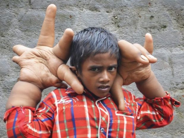 Чыгыш Индияда жашап жаткан сегиз жаштагы Калим туулганда эле өзгөчө жаралган бала. Анын башкалардан өзгөчөлүгү – ар бир манжасынын салмагы 8 кило, ал эми узундугу – 33 сантиметр. Мунун айынан ал күнүмдүк жашоодо керектүү нерселерди өз алдынча жасай албайт. Ата-энеси Калимди даргерлерге көрсөтүп, дарылаткысы келет. Бирок, алардын колун жокчулук байлап турат. Тагыраак айтсак, анын ата-энеси күнүмдүк иштеп тапкан акчанын көлөмү – 22 доллар гана. Дарыгерлер баланын манжасында ашыкча шишик бар деген болжол айтышууда. Кандай болгон күндө да, азыр жергиликтүү дарыгерлер Калимдин ден соолугун кантип калыбына келтирүү жактарын ойлонуштуруп жатышат.