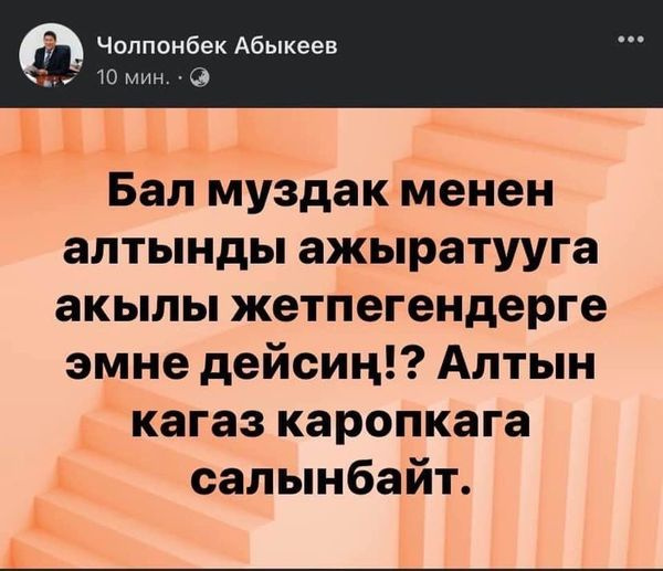"Балмуздак менен алтынды ажыратууга акылы жетпегендерге эмне дейсиң!? Алтын кагаз каробкага салынбайт", - " деп президентти жана анын инисин сындагандарга кайрылды.