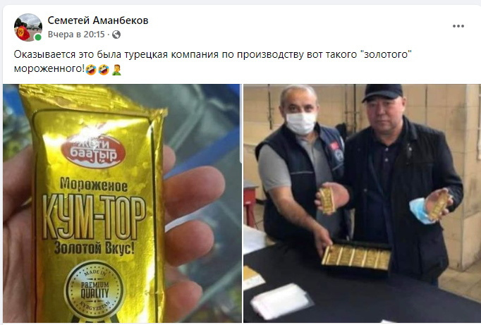 Буга чейин интернетте президенттин агасы Сабыр Жапаровдун алтын куймасы менен түшкөн сүрөтү пайда болгон. Президенттин басма сөз кызматы сүрөттүн чоо-жайын айтпай, социалдык тармактын колдонуучулары ар кандай божомолдорду айтышкан. Кээ бирөөлөр тамашага салып, чындыгында Сабыр Жапаров колунда алтын оролгон балмуздак кармап турганын айтышты.