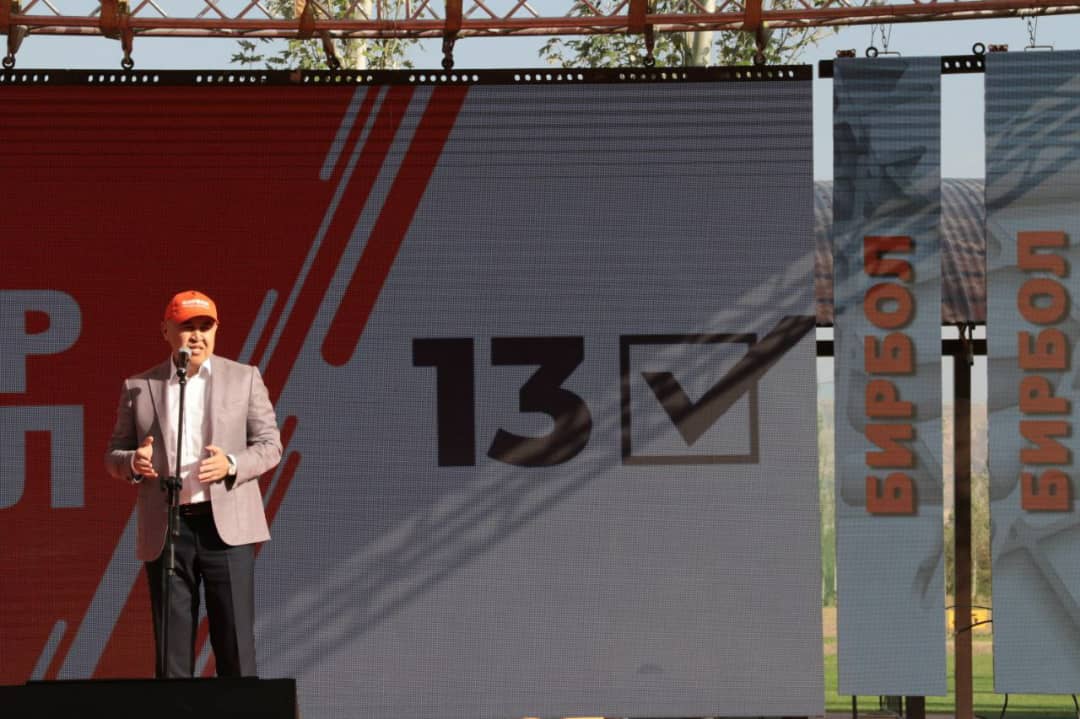“Биз лидерлер, чемпиондор менен биргеликте келечекте 5 жылга карата кандай иштерди жасайбыз, кандай ийгиликтерди жаратабыз, өлкөнү өнүктүрүү үчүн кандай багытта жол алабыз деген программаны сунуштап жатабыз. “Бир Бол” партия катары жаңыланды жана ар бири өз тармагынын лидерлери болгон адамдардан түзүлдү. Алар - өз тарамагында күчүн, жаратмандыгын, ийгиликтерин көрсөткөн, билимдүү жана дүйнөдөгү эң алдыңкы университеттерде окуган, мекенине келип ийгиликтерди жарата алган жаңы жүздөр. Биздин команда бийлик бутактарына же парламентке келсе ийгиликтерди жаратып, өлкөбүздү туңгуюктан алып чыгарына ишенем”, - деди А.Сулайманов.