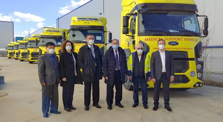 Муну менен катар бейтаптарды ташуу үчүн кичи автобус жана медициналык тез жардам унаасы да алып келинет.